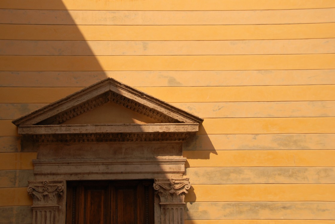 (Tri-) angles on a yellow sunlit wall, Tuscany, Italy.