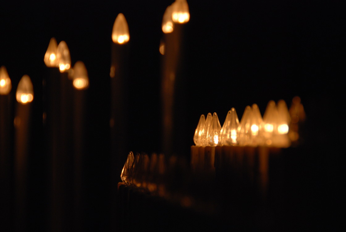 Rows of electric candles, Tuscany, Italy.