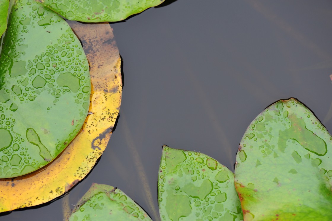 close-up of waterlily leaves