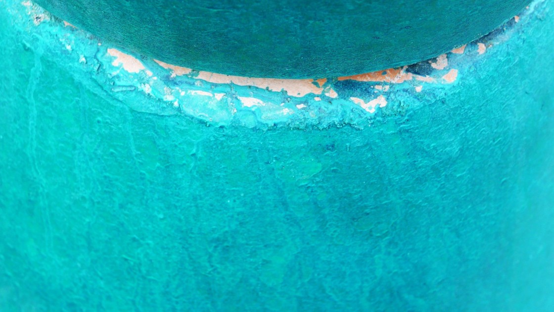 Blue glazed planter pot detail, Palm Springs, California, USA.